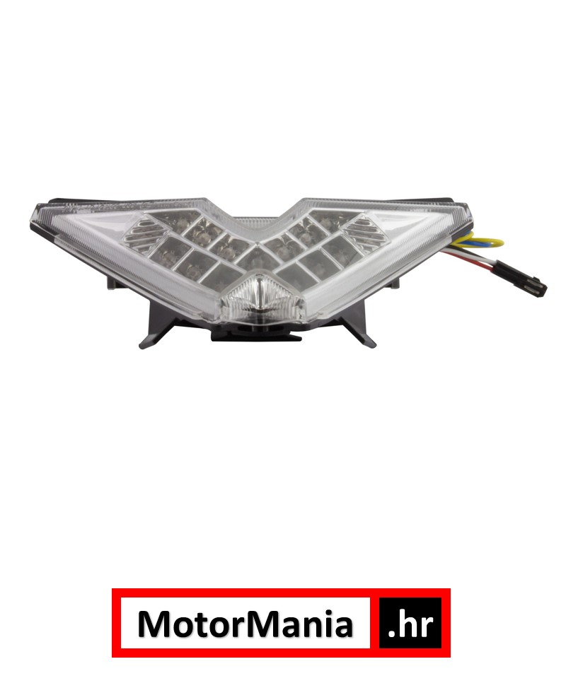 Zamjensko stop / stražnja svjetlo originalnog oblika i dimenzija • LED • jednostavno zamijenit za postojeće • Prozirno staklo • Ugrađeni žmigavci, mogu se koristit sa postojećim • Crveno svijetlo za stop i poziciju • žuto svijetlo za žmigavce Napomena: Još provjeravamo dali se smiju koristiti samo integrirani žmigavci bez originalnih, vožnja bez originalnih na vlastitu odgovornost. Za vozila : Aprilia RSV 4 09-12