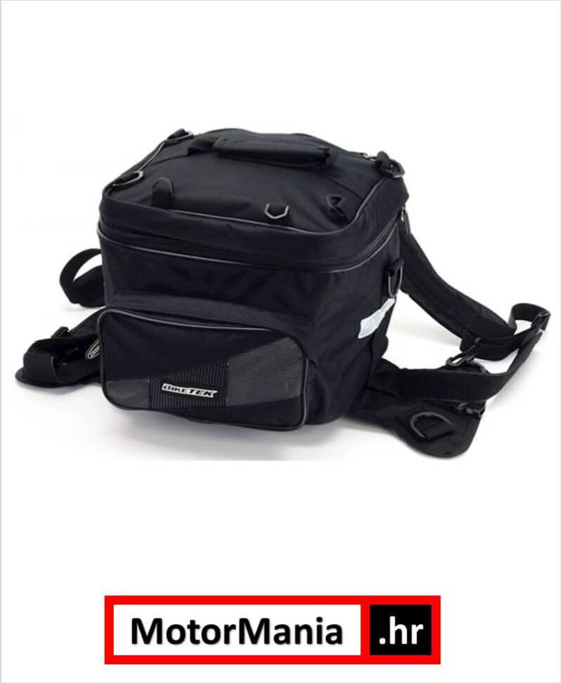 Bike Tek torba za stražnji dio s glavnim pretincem koji se širi i bočnim pretincima, maksimalni kapacitet od 36 litara.